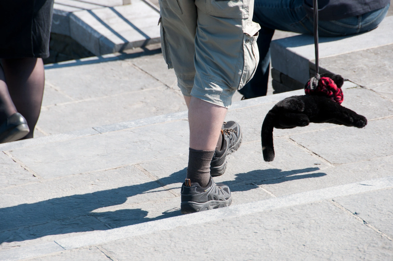 As we were approaching the cliffs we saw a big adult man with no kids in sight walking this dog. The dog was on an elastic leash and it was very light so every time it touched the floor it would jump towards the sky. A little bit surreal.