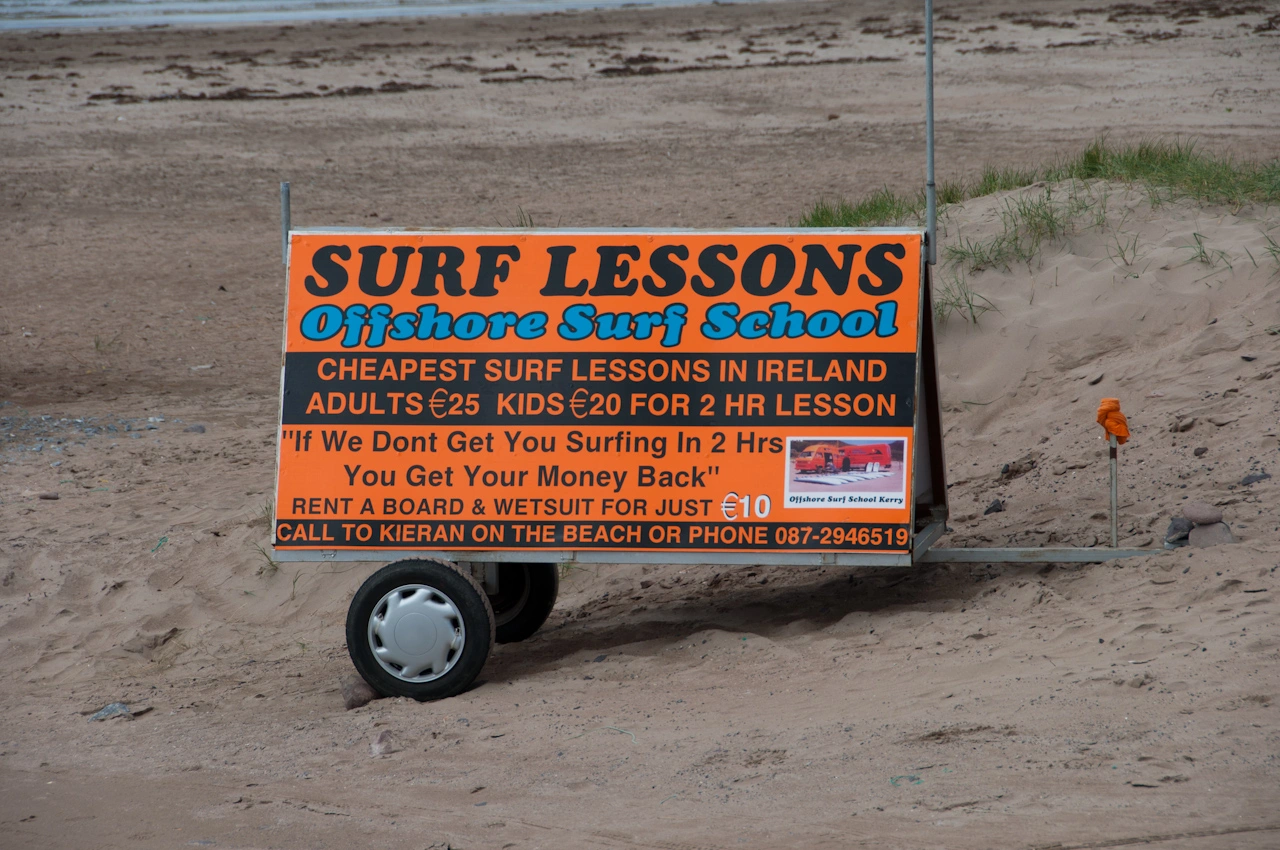 Our first stop brought us to a beach where several families and their kids were enjoying the cold waters of the Atlantic ocean. There were two companies offering surfing lessons with an interesting guarantee.
