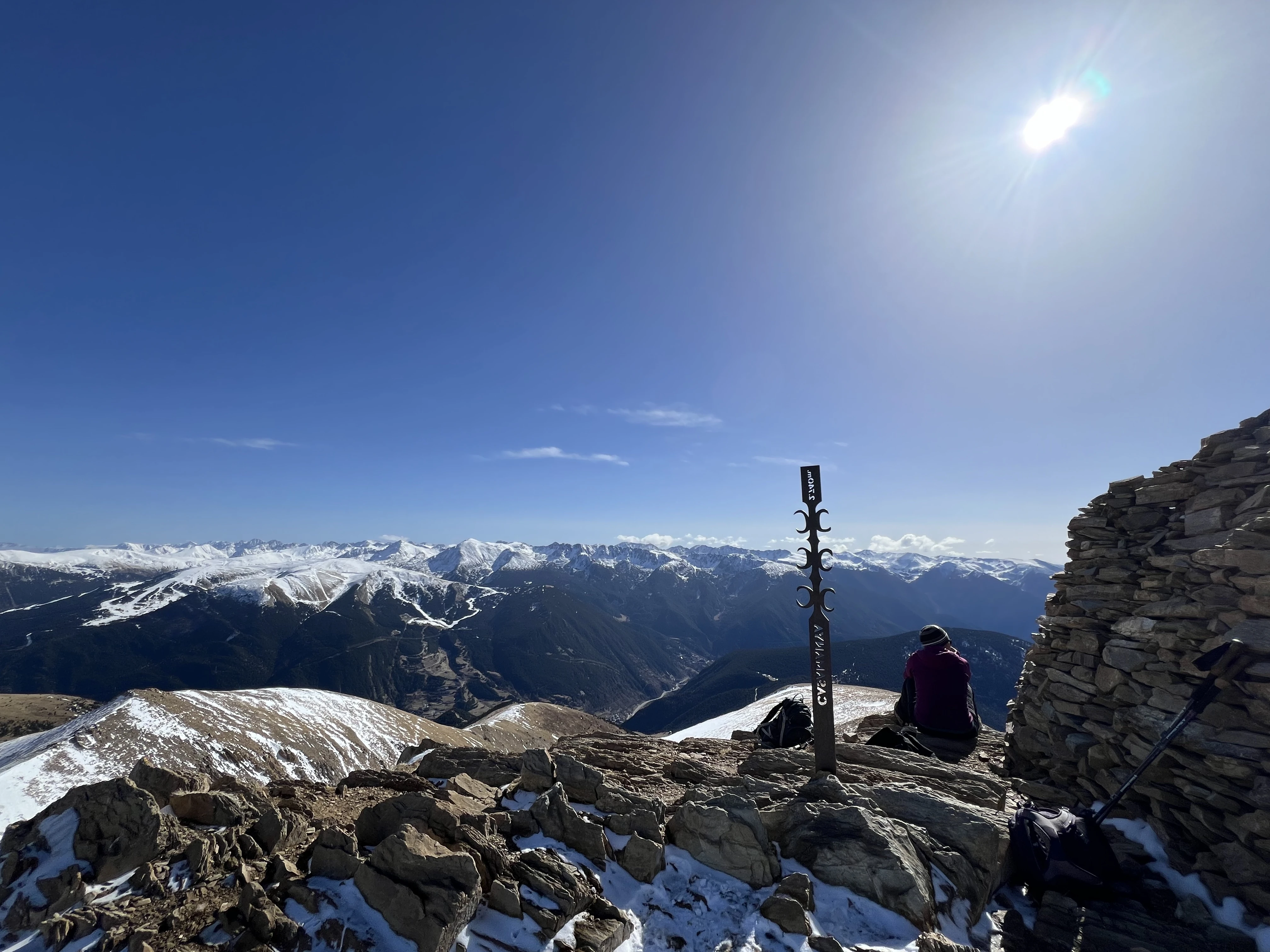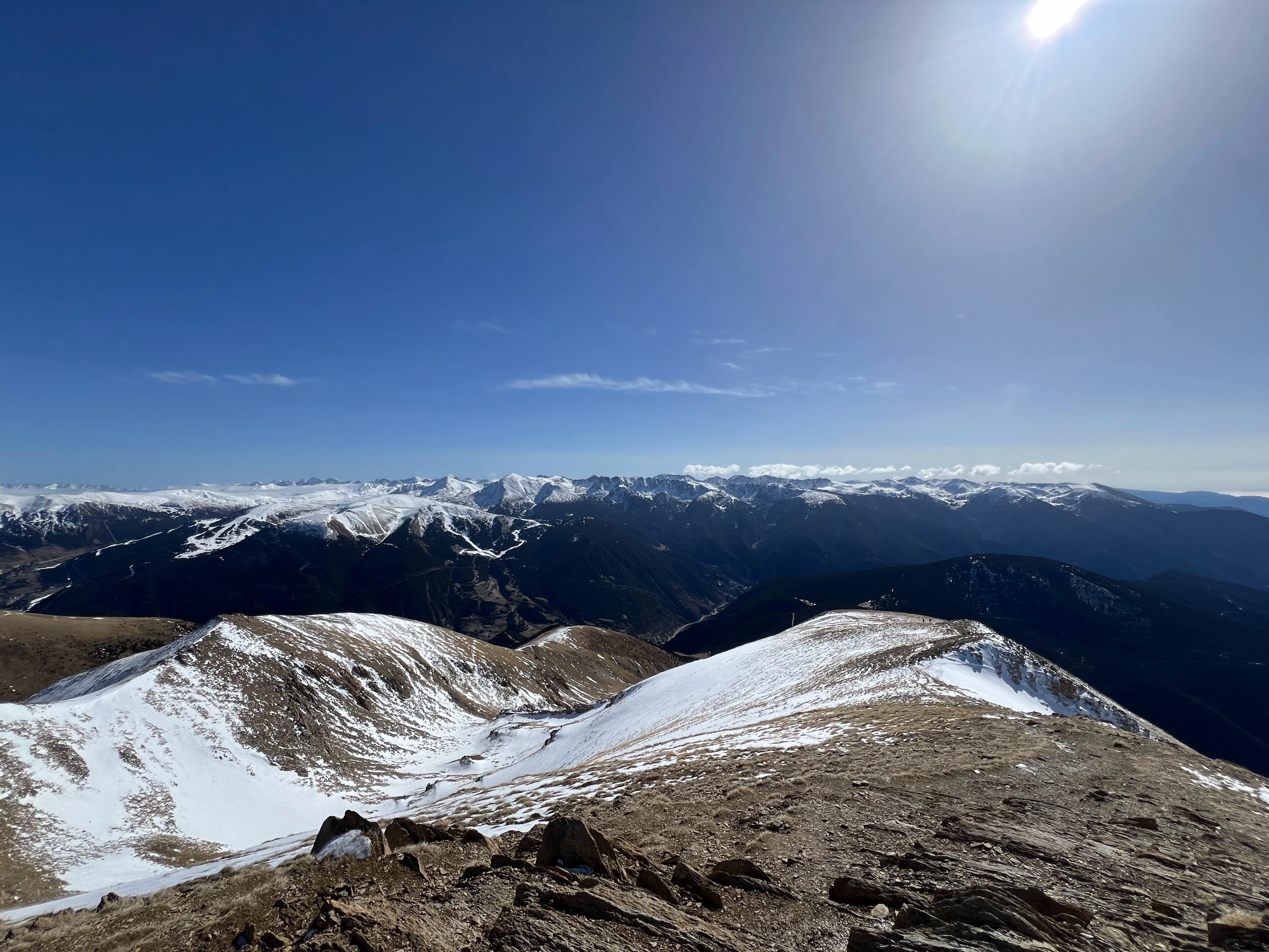 Yesterday we ascended Casamanya, a 2,740m giant that we see every time we do groceries but that we had never climbed over its southern face. It was sunny, but chilly breezes that seemed to know when it became too hot, regularly washed over us making the climb a joy. We have had a warm winter, and a trail that would normally be covered with snow, only had sparse patches. And even though the conditions were perfect, we came across so few people that it felt like the mountain was ours.