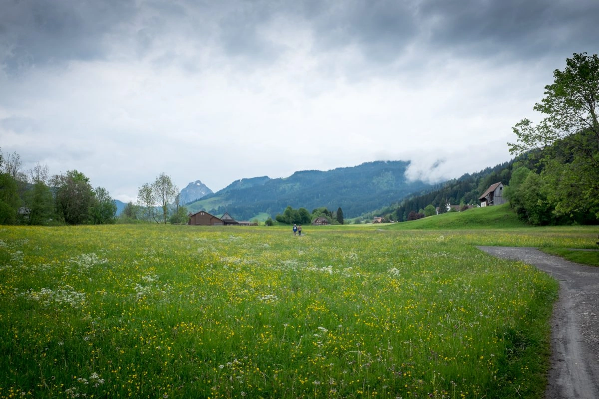 The first part of the hike ran through a wide valley outside of Einsiedeln. The weather looked challenging but the forecast promised no rain over the following hours and we are trusting people.