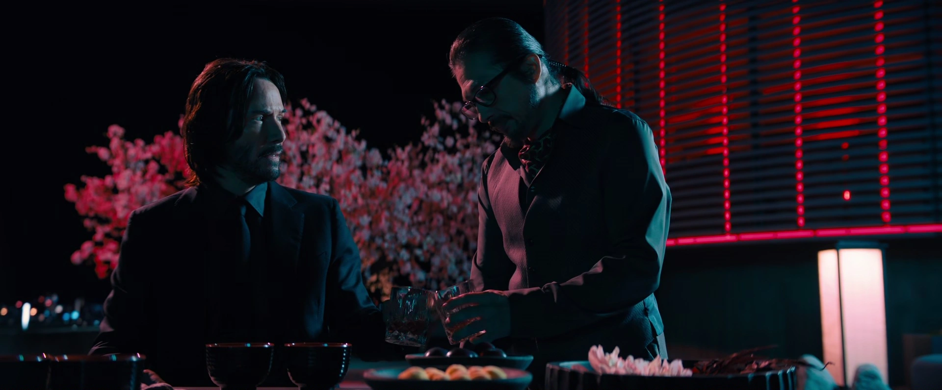 Compared to the prequels, I found Chapter 4 the most visually stunning and I enjoyed the various motifs repeated through the movie like the gold on grey, the Western royal luxury around the Marquis, the sunrises, and the “underground” composite theme of subways, clubs, neon lights, to name a few. The strong contrasts between scenes were also refreshing.