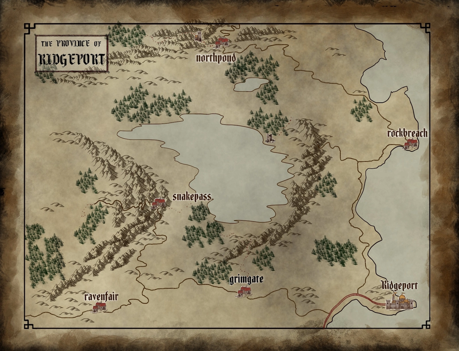 - Rockbreach: small coastal village, the heroes’s home base.