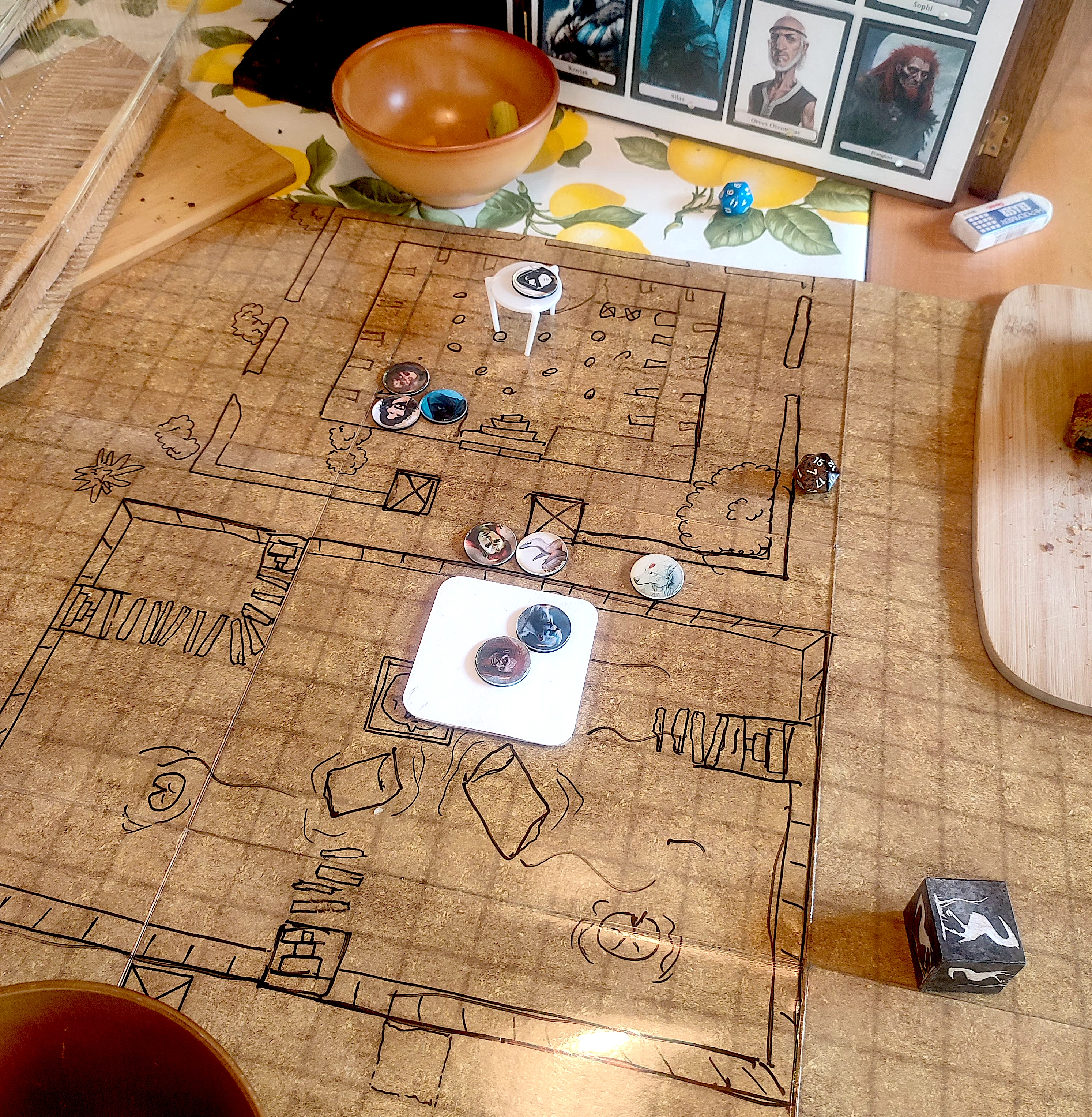 While the outside party is freaking out, inside the temple Avilos gets fidgety and, with Chos holding him by his feet, he pops out of the extraplanar pocket into the poison gas and casts fireball in the general direction of the entrance door. The gas turns out to be flammable and, through a very quick sequence of, all things considered, very lucky events for the bard the following happens: he destroys the front door and a big chunk of the front wall, he falls unconscious from the massive damage, Chos loses grip of the unconscious halfling who then falls nine meters down onto the spike traps below, and gets impaled on his torso and his left leg, truly miraculously, without dying. Chos immediately casts his most powerful healing spell at Avilos who wakes up and starts screaming from the most intense pain he’s ever felt. Images of Pipkin, Meri, and all the women who came after that flash through his eyes.